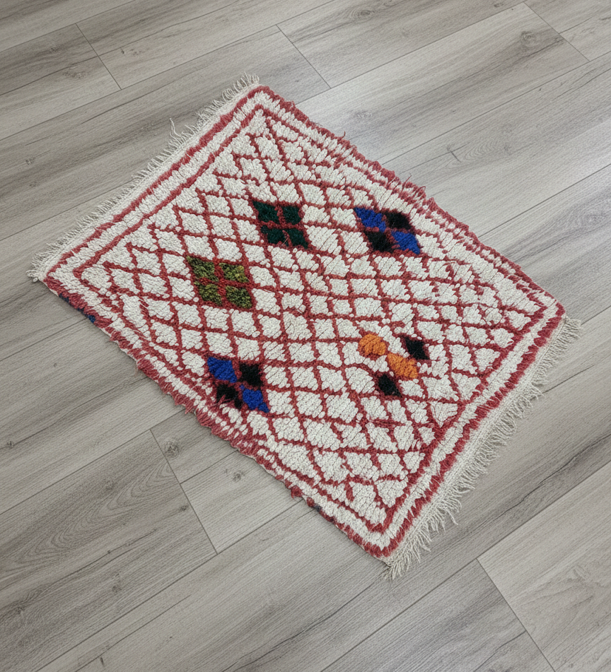 Apportez une touche d’authenticité et de caractère à votre intérieur avec ce tapis berbère Azilal vintage, entièrement tissé à la main par des femmes artisanes des montagnes du Moyen Atlas marocain. Réalisé selon des savoir-faire ancestraux transmis de génération en génération, chaque tapis est une œuvre unique, née de l’imagination et de la sensibilité de l’artisane qui l’a créé.